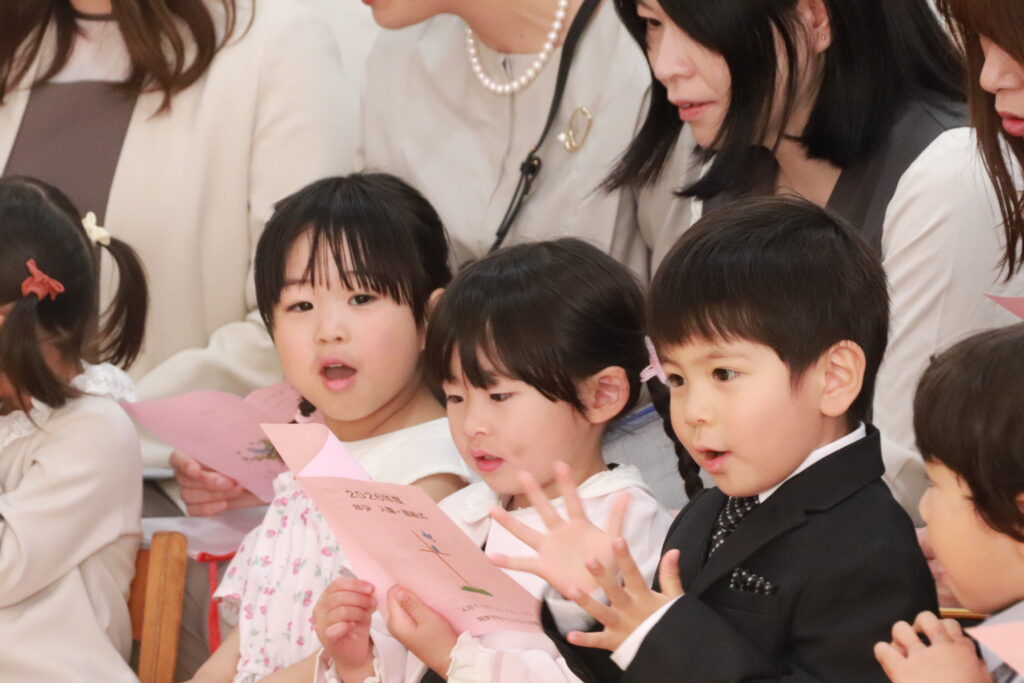 2026年4月14日 / 最終更新日時 : 2026年4月18日 ofo3_testnobi 入園進級式 ~幼児~ 年少クラスの入園進級式を行いました。天候もとてもよく、あたたかく、過ごしやすい気温の日でみんなのことをお祝いしてくれているようでした。 おうちの方と一緒に登園し、にこにことした表情な子どもたち。 その週には年中・年長の入園進級式も子どもたちと保育者で行いました。 全学年、2026年度の保育が スタートしました!! 神様の愛に包まれながら たくさん遊んで 笑顔あふれる1年間になりますように。