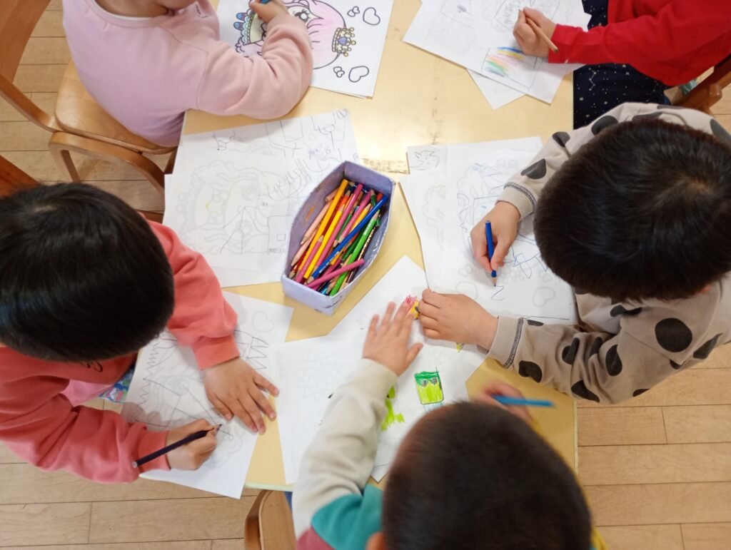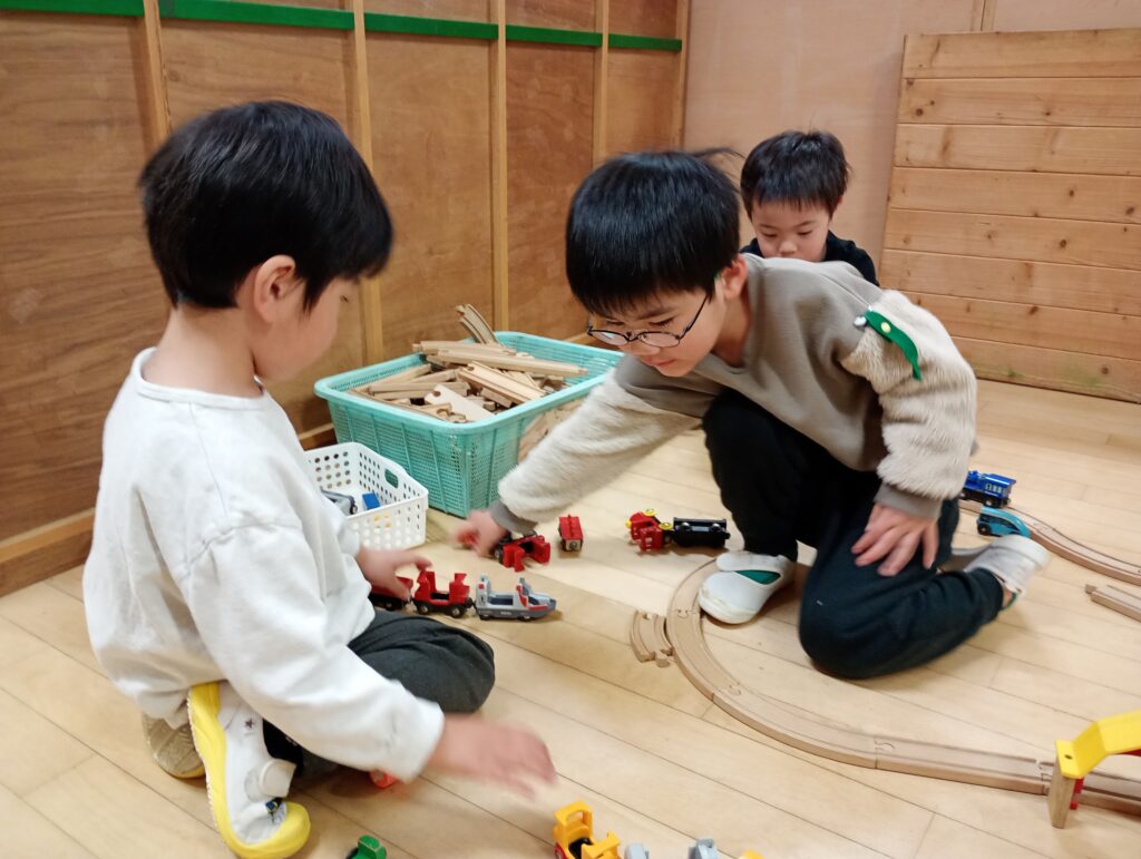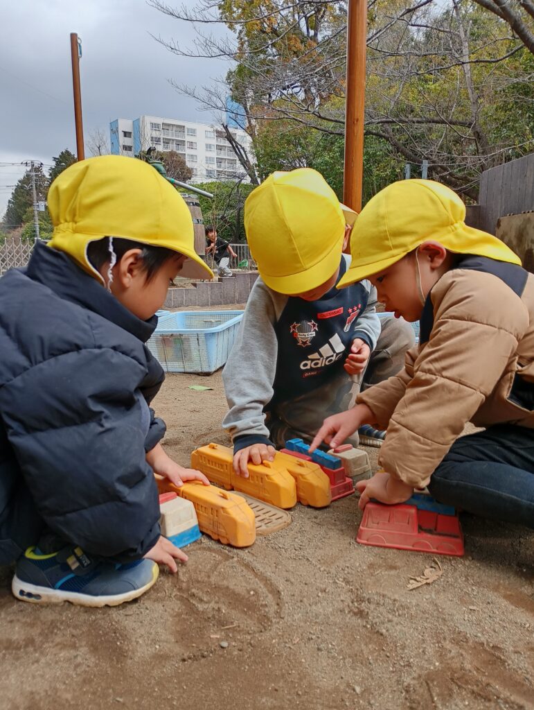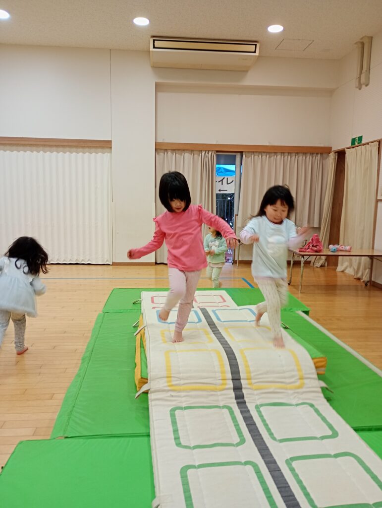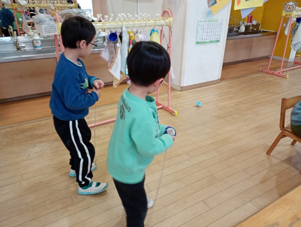 2026年3月10日 / 最終更新日時 : 2026年3月10日 ofo3_testnobi 日常の遊び ~年少~ 2月は、食育活動でおにぎり作りや、クッキー作りの話題が多い年少でしたが、室内遊びも園庭遊びも楽しんでいます。 年長さんや、保育者に教えてもらいコマを回せる子が増えてきていたり、 ホールでも思い切り遊び、年少の入園当初からの「おさかな遊び」で遊ぶ姿も久しぶりに見られました。 昨年の4月は、泣いていることが多かった年少さんですが自分の好きなことを見つけて、楽しむ姿がたくさん見られます。いっぱいの「楽しい思い出」を作って年中さんでもたくさん遊んでほしいです。